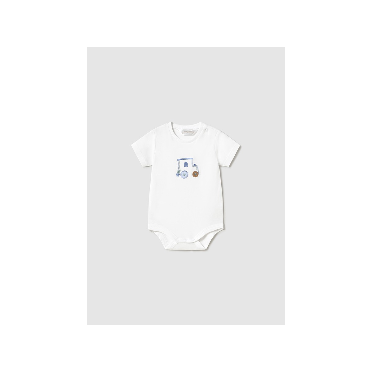 Conjunto infantil Mayoral: chaqueta coches jade, body camiseta y pantalón primavera 2025.
