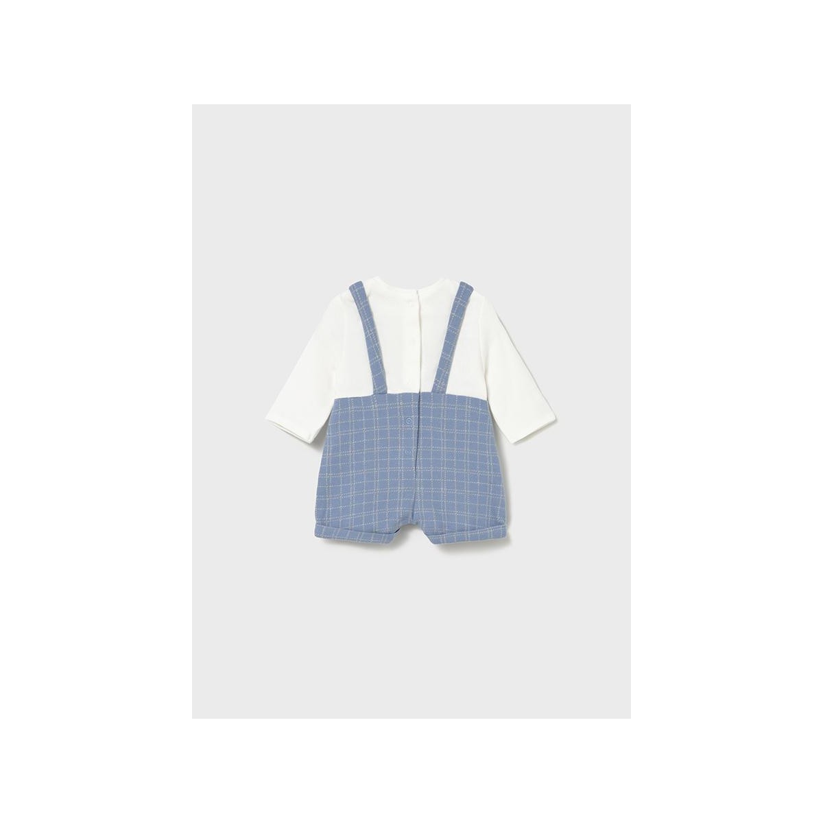 Conjunto Mayoral de camisa de cuadros y pantalón corto para bebés. Confeccionado en 100% algodón suave, ideal para la piel sensible del bebé. La camisa cuenta con un adorable bordado de osito en el bolsillo y cierre con botones para fácil cambio. Perfecto para la temporada de 2 a 12 meses.