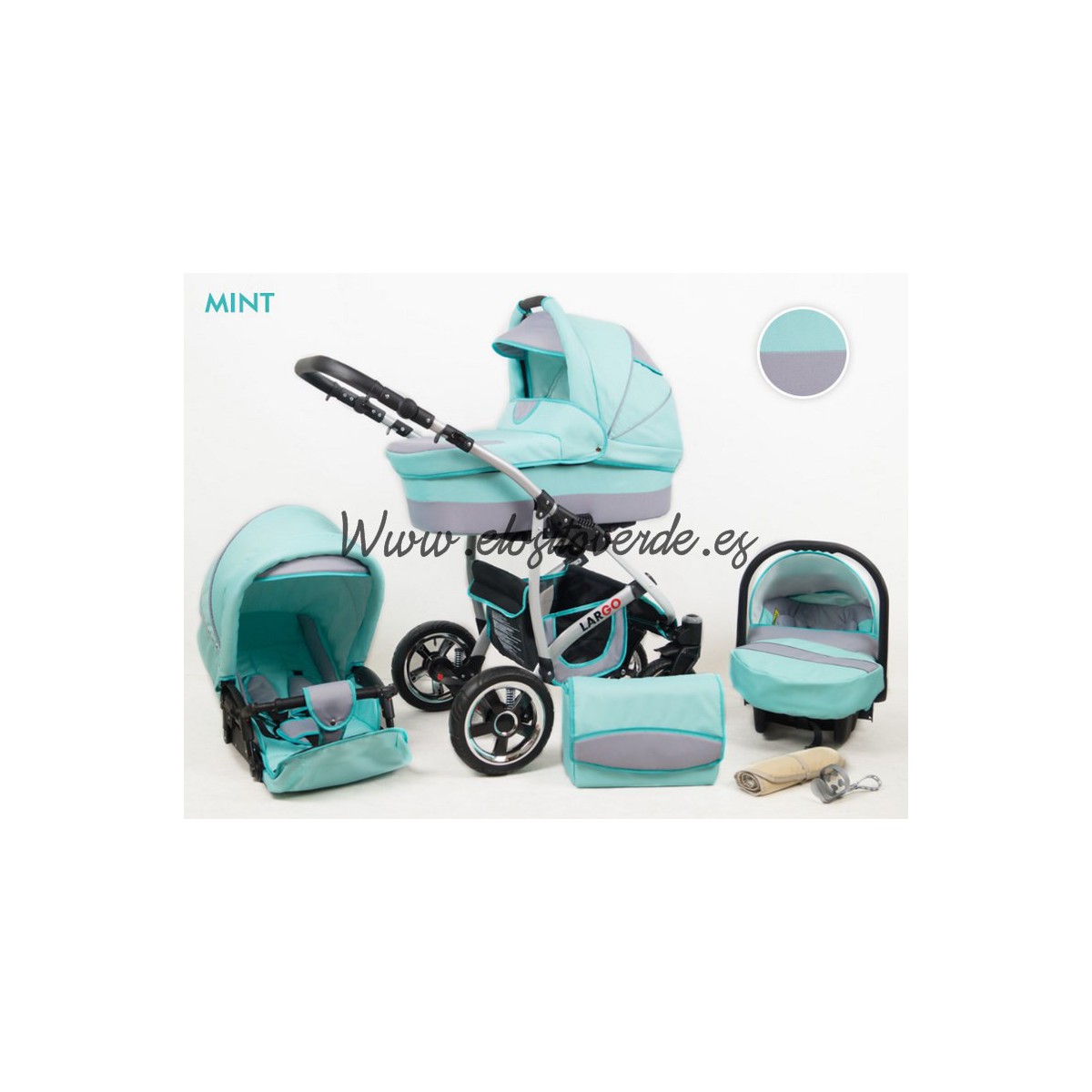 Largo 3 piezas Carro bebé Silver Gris Menta.