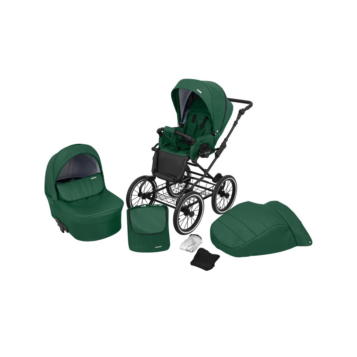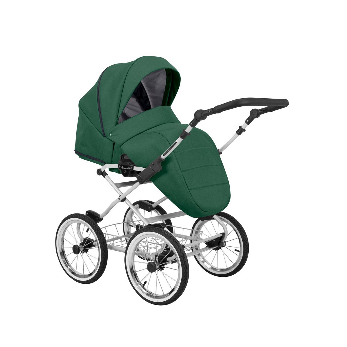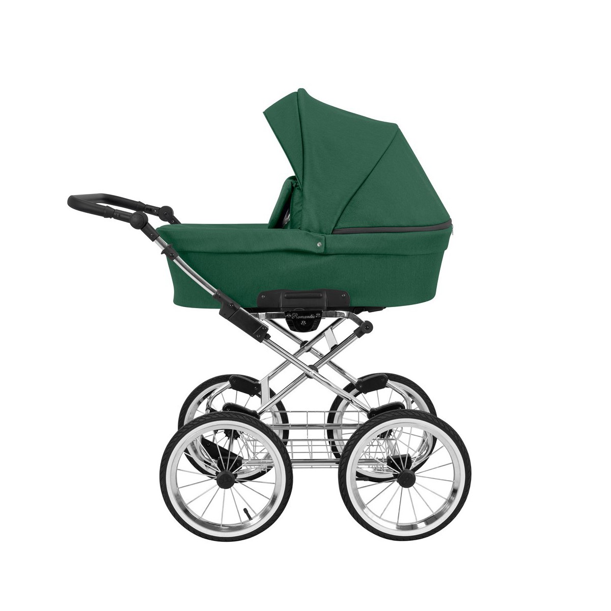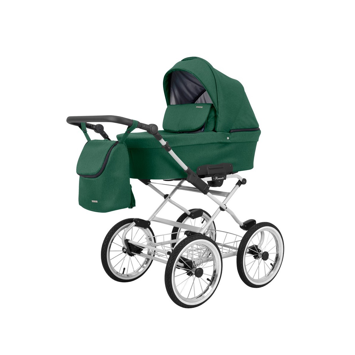 Romantic Kunert Eco Line 2 o 3 en 1 Verde Esmeralda Un carrito clásico con todas la comodidades de uno moderno y actual. Realizado totalmente en EUROPA pasando todos los controles de calidad respectivos. Combina materiales como la eco piel y el textil para darle un look más aparente y elegante. Ruedas inflables cómodas para poder salvar bordillos con mayor facilidad.