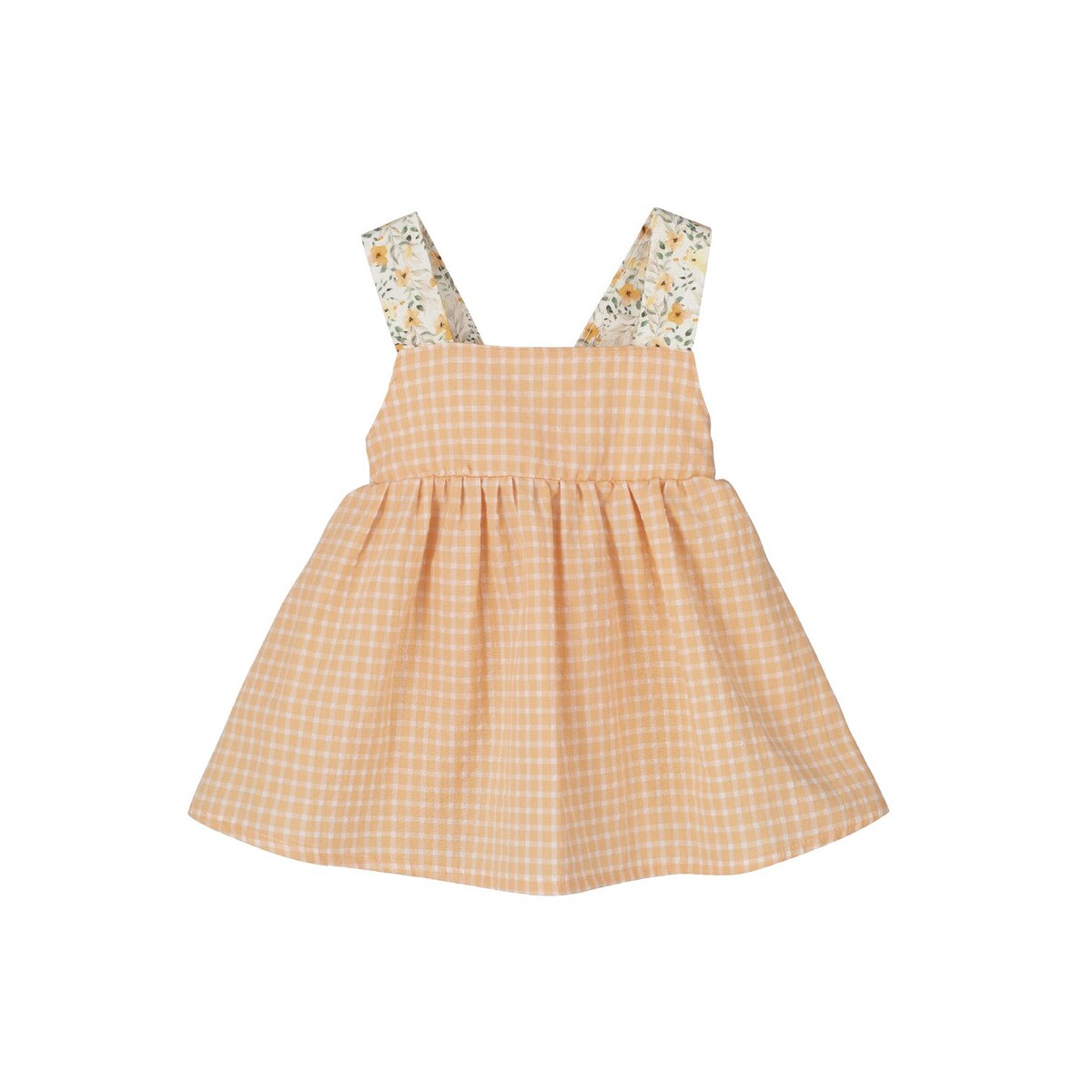 Vestido Pimpinela Melocotón Cuadro Flores Calamaro 18 meses a 5 años.